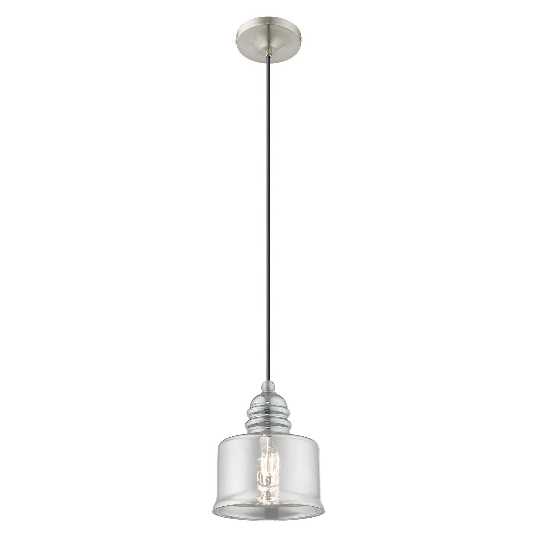 The 40651-91 Mini Pendant Fixture in Brushed Nickel features a simple, hand-blown smoke glass shade that exudes authentic charm in an industrial style. This pendant light accommodates one medium base bulb with a maximum wattage of 60W, making it an ideal lighting solution for various spaces. With an adjustable height ranging from 9.5 inches to 80 inches and a diameter of 6.75 inches, it fits seamlessly into different room configurations. Its 6-foot wire length provides flexibility in installation, and it is suitable for damp locations, allowing you to enhance areas like bathrooms or covered patios.