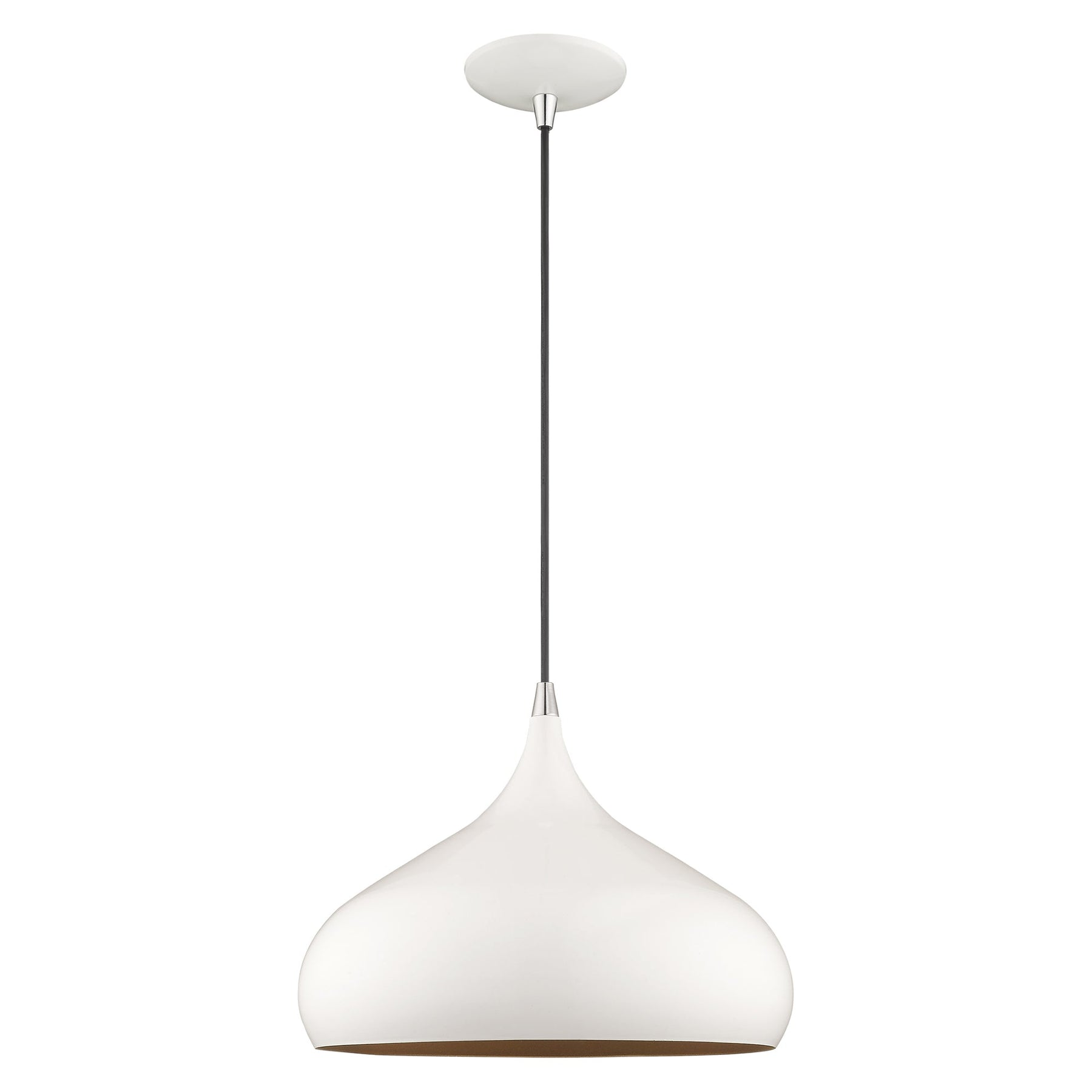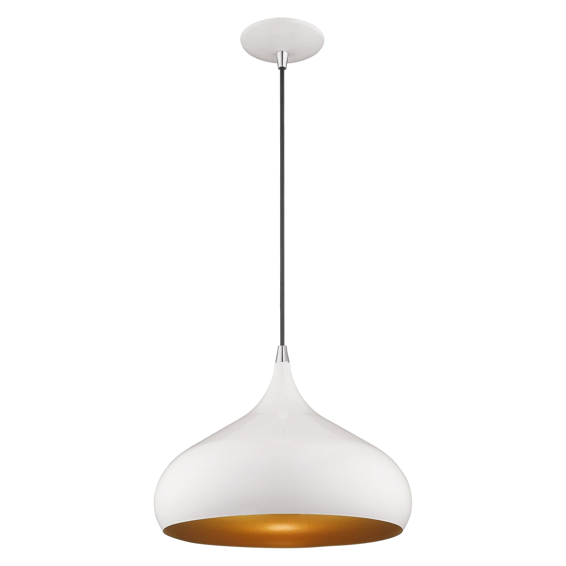 The 41173-69 Metal Shade Mini Pendant offers a modern and minimalistic design ideal for contemporary spaces. Featuring a stunning shiny white exterior with a gold finish inside, this pendant light is crafted from durable steel. It accommodates one medium base bulb with a maximum wattage of 60W (bulb not included) and has adjustable height ranging from 17 inches to 75 inches, along with a 5-inch diameter canopy. This fixture is suitable for damp locations, making it a versatile choice for various settings. The polished chrome finish accents add an extra touch of elegance, making it perfect for those looking to enhance their decor.