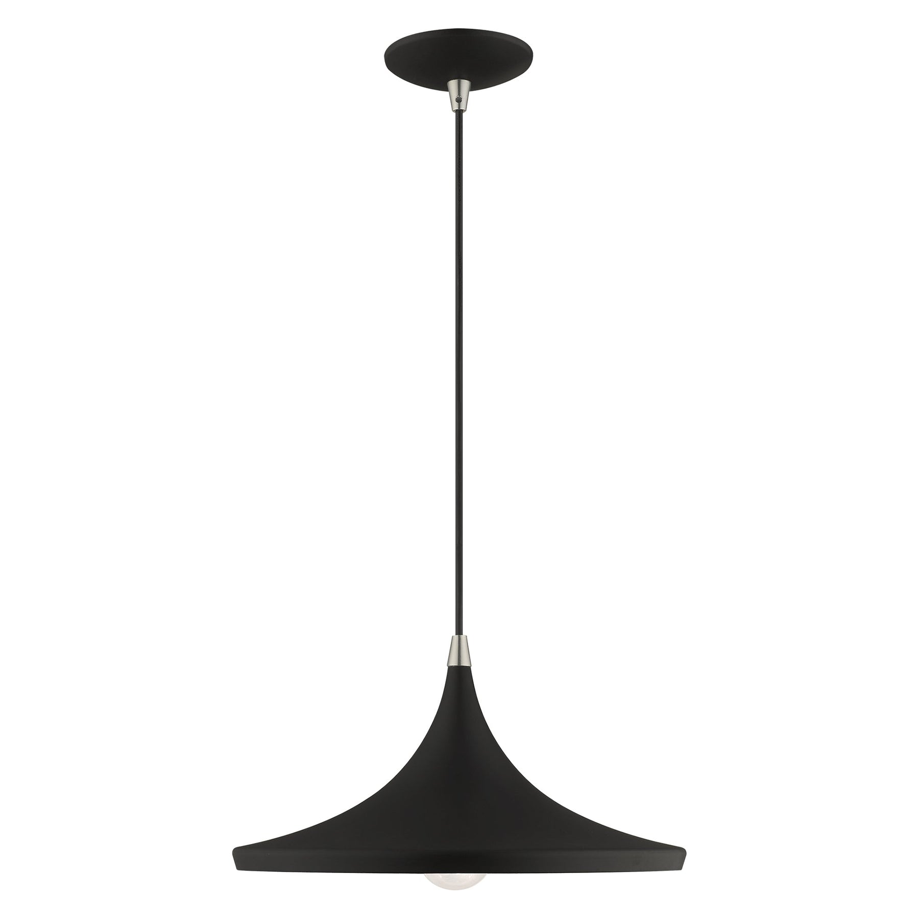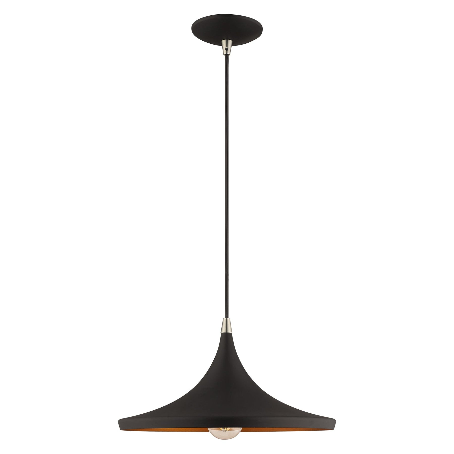 The 41187-04 Mini Pendant boasts a striking mid-century modern design that combines a sleek black metal shade with a radiant gold finish inside. This versatile light fixture is adjustable in height from 13 inches to 75 inches, making it perfect for various ceiling heights. Accommodating a single medium base bulb with a maximum wattage of 60, it provides ample illumination for spaces like kitchen islands or entryways. With a diameter of 14 inches and a canopy size of 5 inches, this pendant light is not only stylish but also suitable for damp locations, adding elegance and functionality to any contemporary decor.