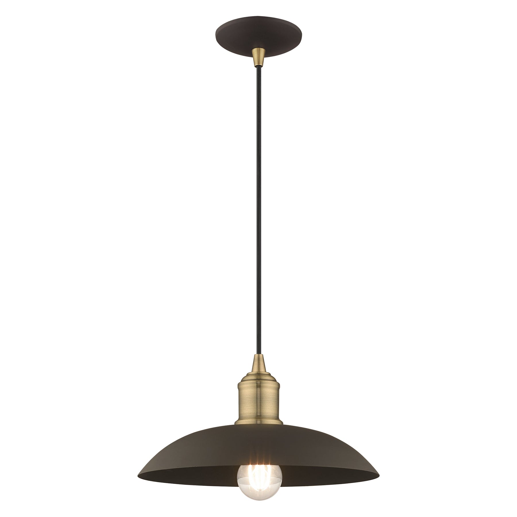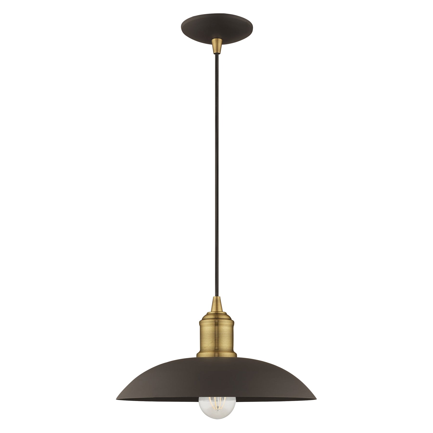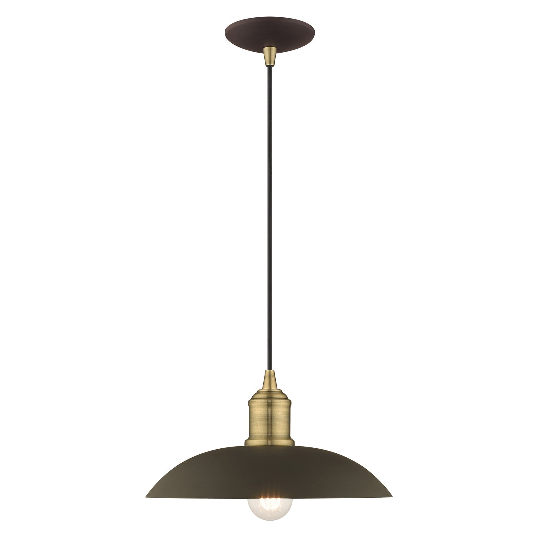 The 41193-07 Mini Pendant light features a striking bronze metal shade complemented by antique brass accents, perfect for adding a retro-industrial flair to your space. With an adjustable height ranging from 11.25 inches to 70 inches and a diameter of 12.5 inches, this pendant is versatile enough for various ceiling heights. It requires one medium base bulb (not included) with a maximum wattage of 60W and is designed for damp locations, making it suitable for areas like kitchens and dining rooms. The sleek design and urban style make it an appealing choice for modern interiors.