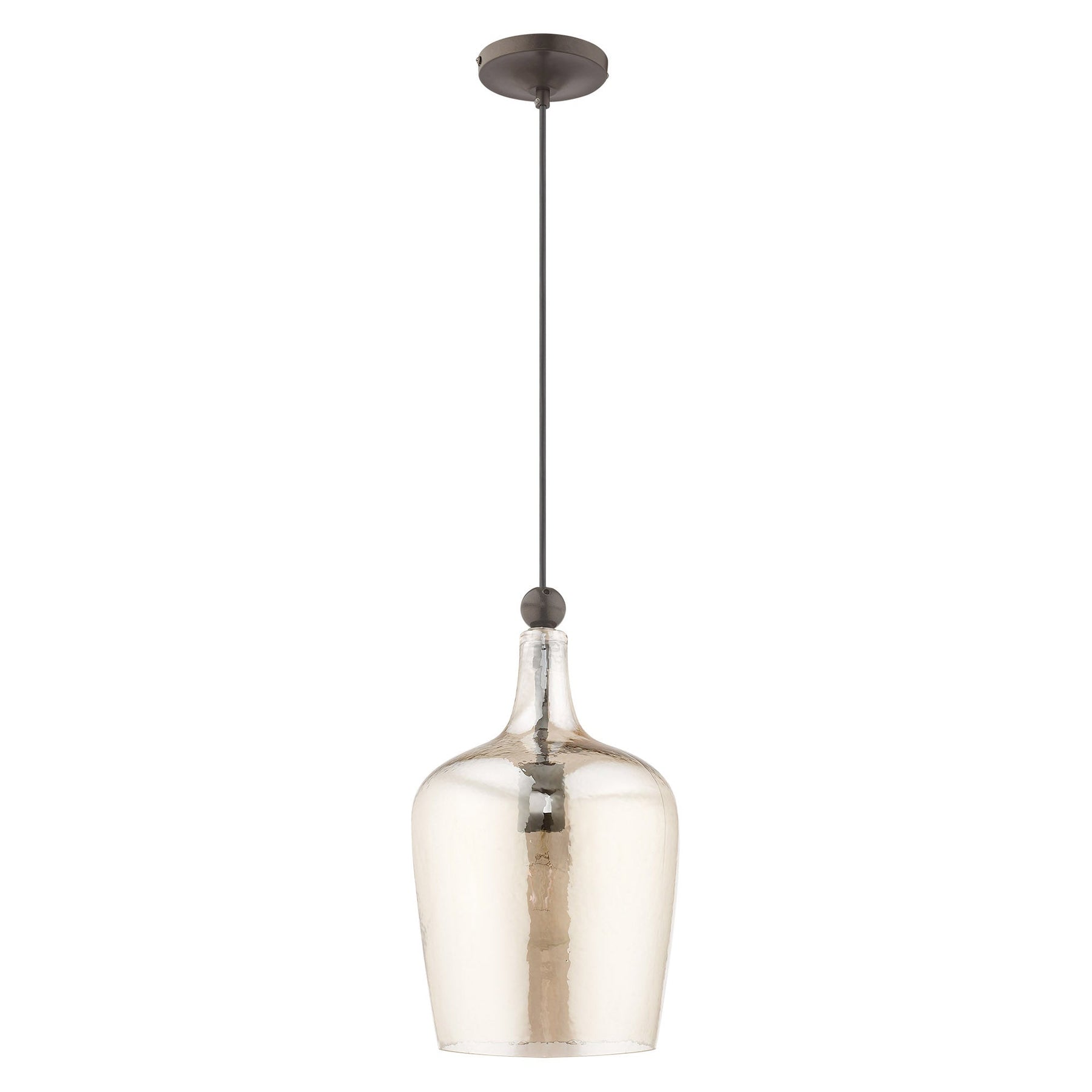 The 41226-92 Art Glass Mini Pendant, featuring a sleek design with English bronze hardware and a stunning champagne glass shade, is an ideal lighting solution for kitchens, bars, and hallways. This attractive fixture accommodates a single medium base bulb (not included) with a maximum wattage of 60W. With adjustable heights ranging from 18.5 inches to 90 inches, and a diameter of 9.25 inches, it offers versatility in installation. Additionally, the pendant is suitable for damp locations, making it a practical choice for various settings, particularly in areas that might experience moisture.