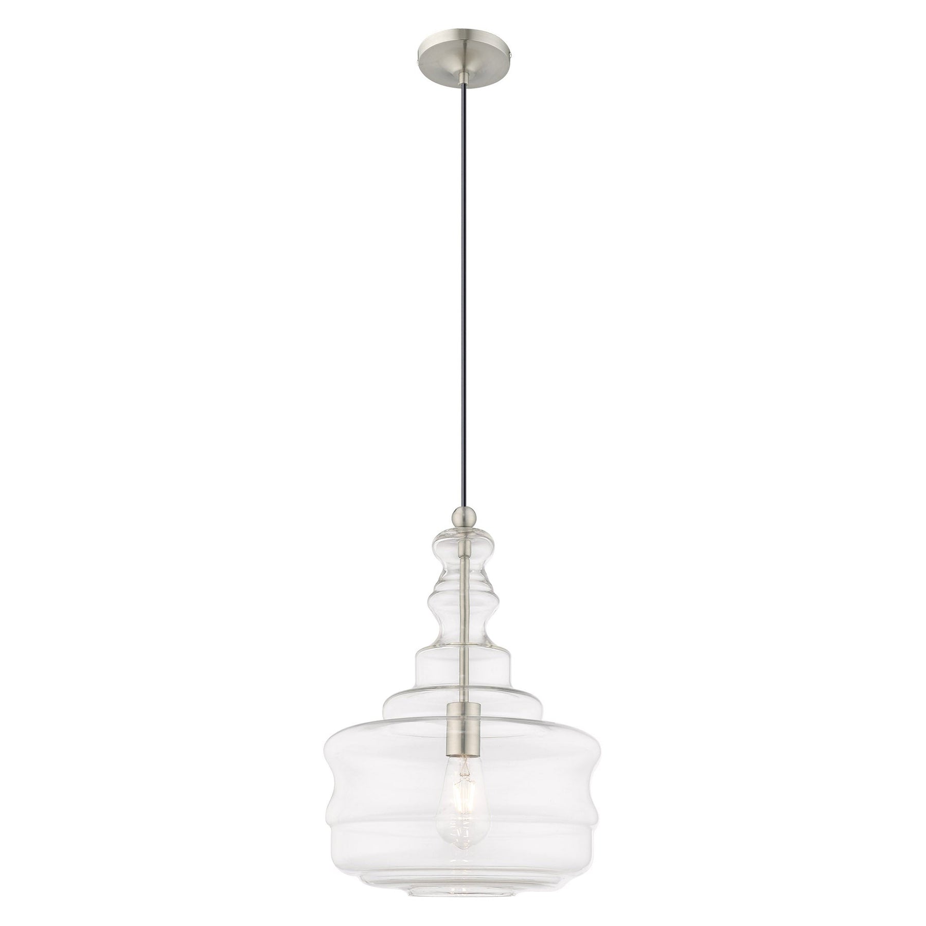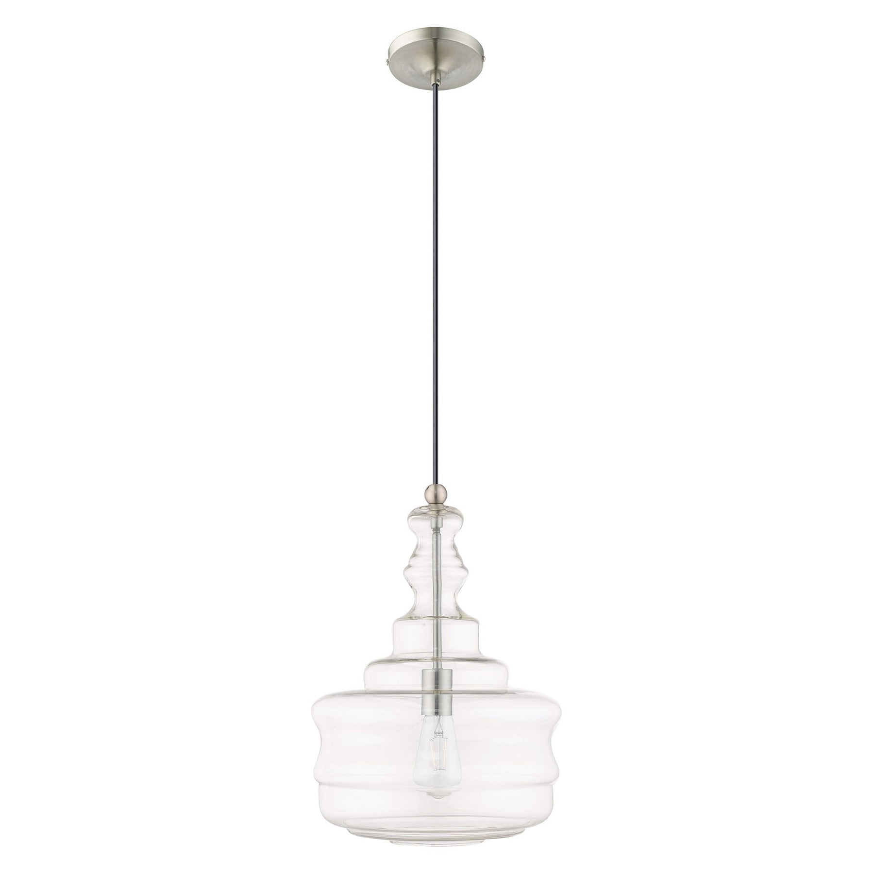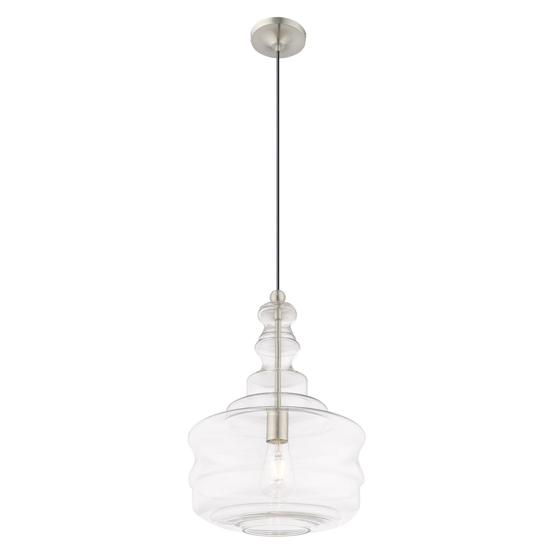 The 41239-91 Art Glass Mini Pendant is a stunning lighting fixture that elegantly combines traditional and modern aesthetics. With a height adjustment ranging from 19.25 inches to 90 inches and a diameter of 12.625 inches, it is versatile enough for various spaces. This mini pendant features a single medium base bulb (not included) with a maximum wattage of 60W, providing ample illumination. Designed with a brushed nickel finish and crafted from clear glass, it is not only stylish but also suitable for damp locations, making it ideal for kitchens and dining areas. Its ability to accommodate sloped ceilings adds to its practicality, ensuring a perfect fit in any home.