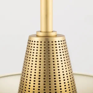 The Kiki Wall Sconce by Mitzi offers a chic and versatile lighting option that combines modern design with traditional elegance. This sconce features a cream steel shade and measures 18 inches in width and 15.25 inches in height, providing ample illumination with a single E26 medium base socket that's compatible with a recommended A19 bulb, and a maximum wattage of 75W. Available in multiple finish options including Aged Brass with cream or pink and Polished Nickel with mint or navy, this UL Damp rated sconce is suitable for a variety of settings, making it perfect for kitchens, bathrooms, or outdoor areas.