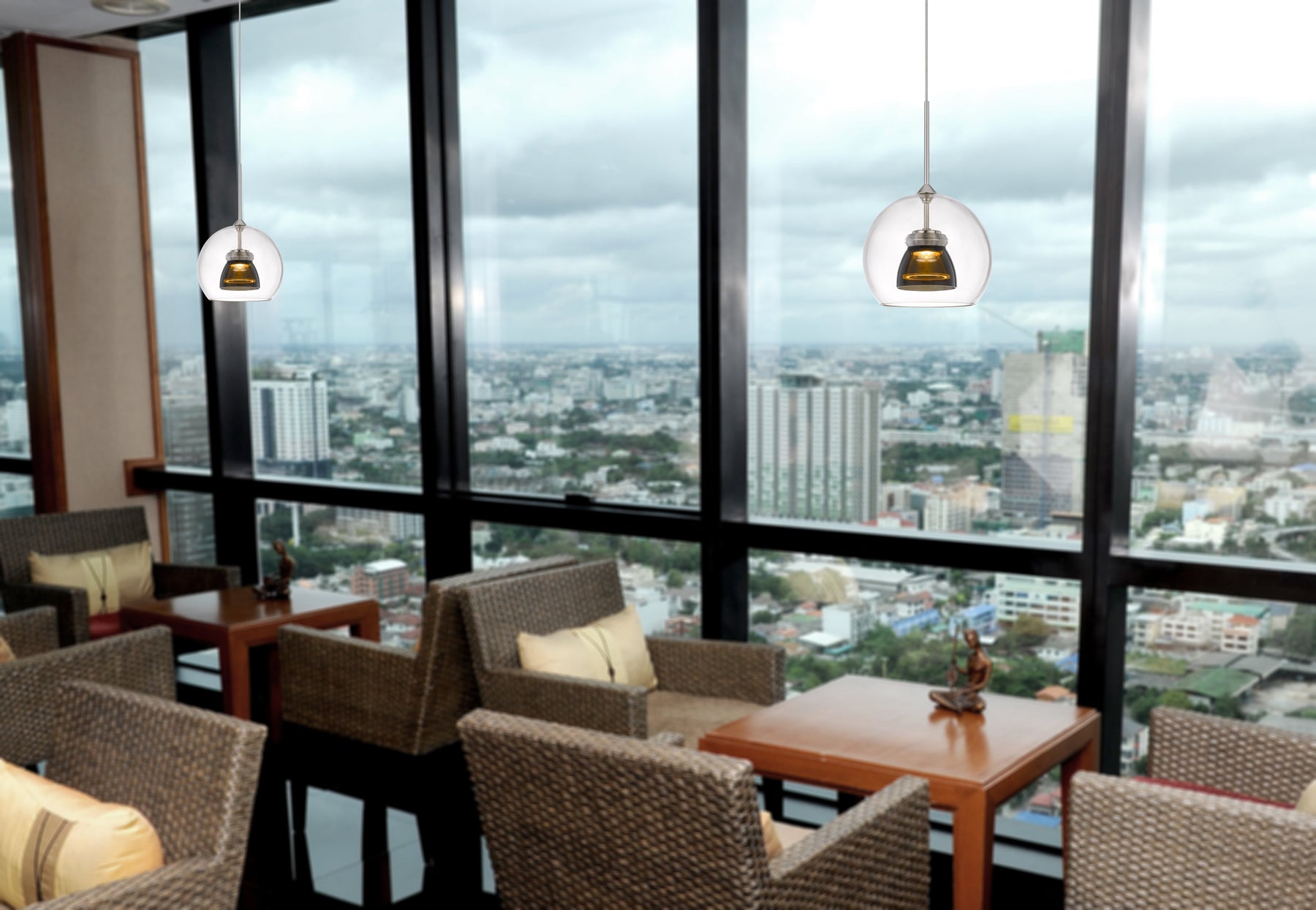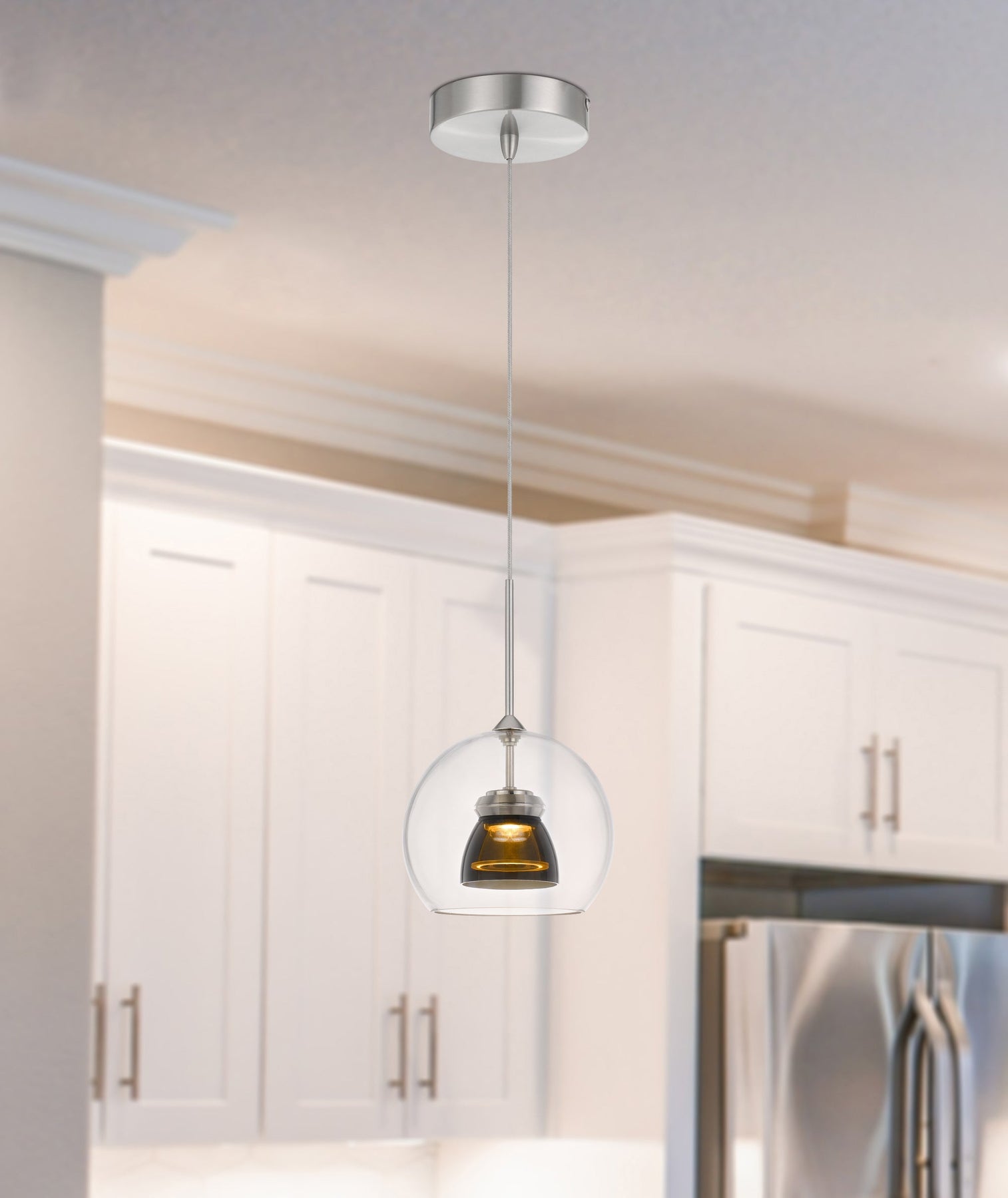 INTEGRATED DIMMABLE LED GLASS MINI PENDANT LIGHT. 6W, 450 LUMEN, 3000K