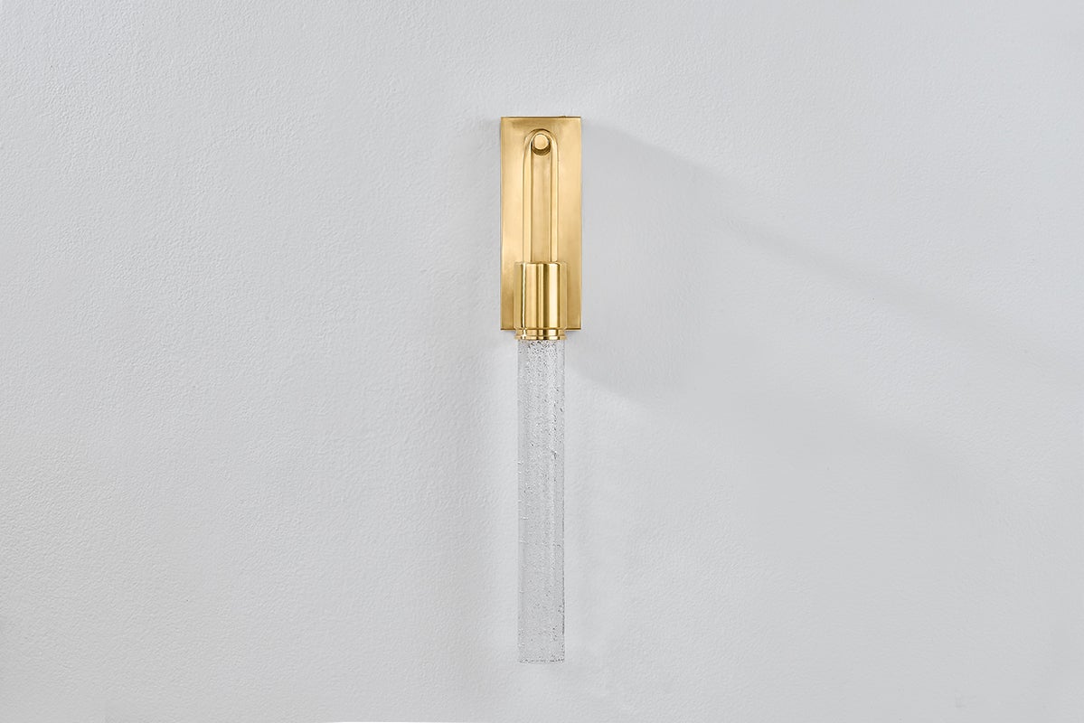 The Raynham Wall Sconce by Hudson Valley Lighting combines elegance with functionality. This stylish fixture features a 3.00-inch width and stands 20.25 inches tall, with an extension of 3.00 inches from the wall. It is designed to accommodate one integrated LED lamp, providing a warm color temperature of 3000K and an impressive 55 lumens output with a CRI of 90. The glass shade adds a touch of sophistication, and the sconce is available in two exquisite finishes: Aged Brass and Distressed Bronze. While it is ETL Damp rated, this versatile piece is not field serviceable and does not require a plug-in. This makes it an ideal choice for enhancing various indoor spaces.