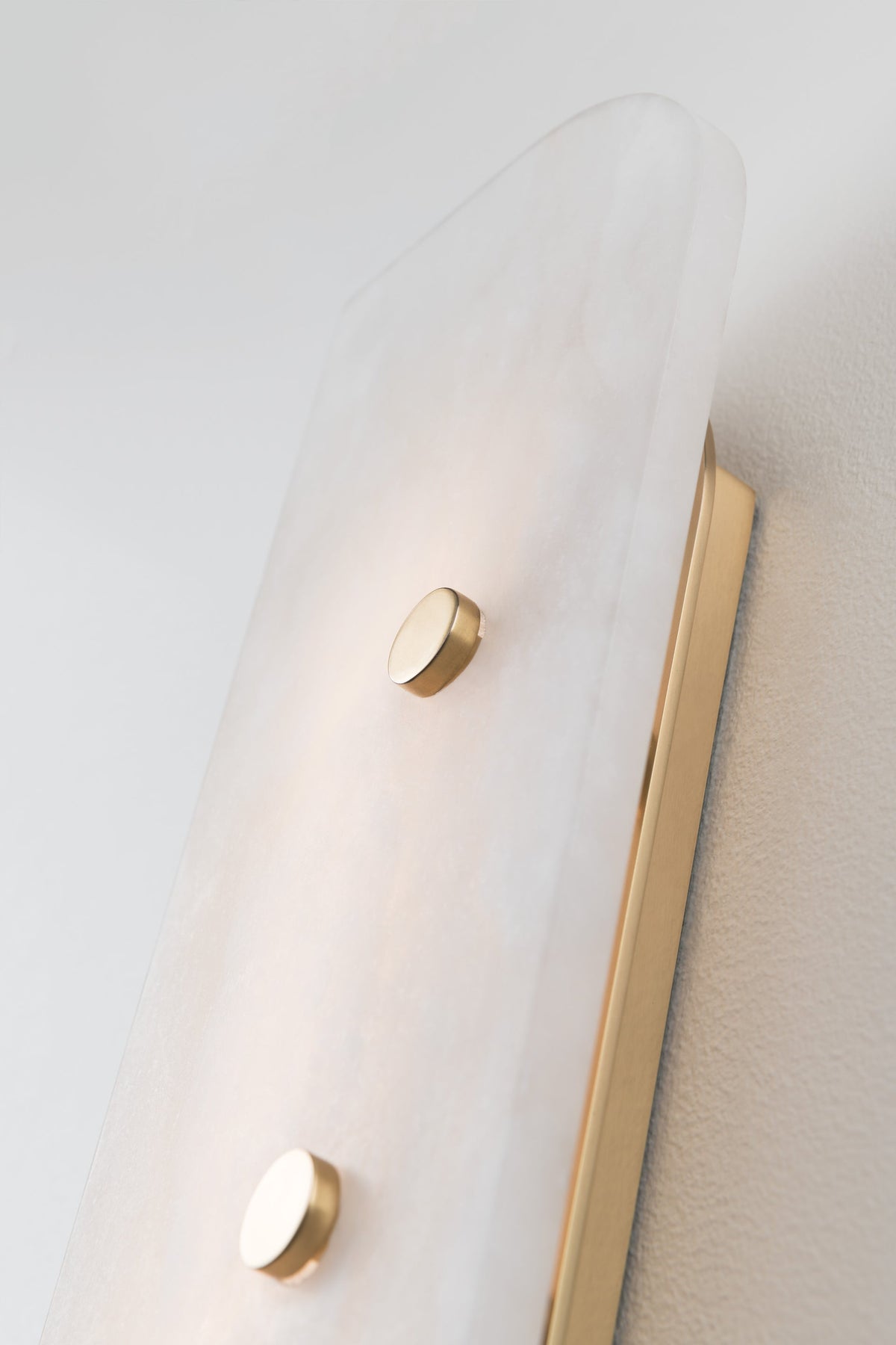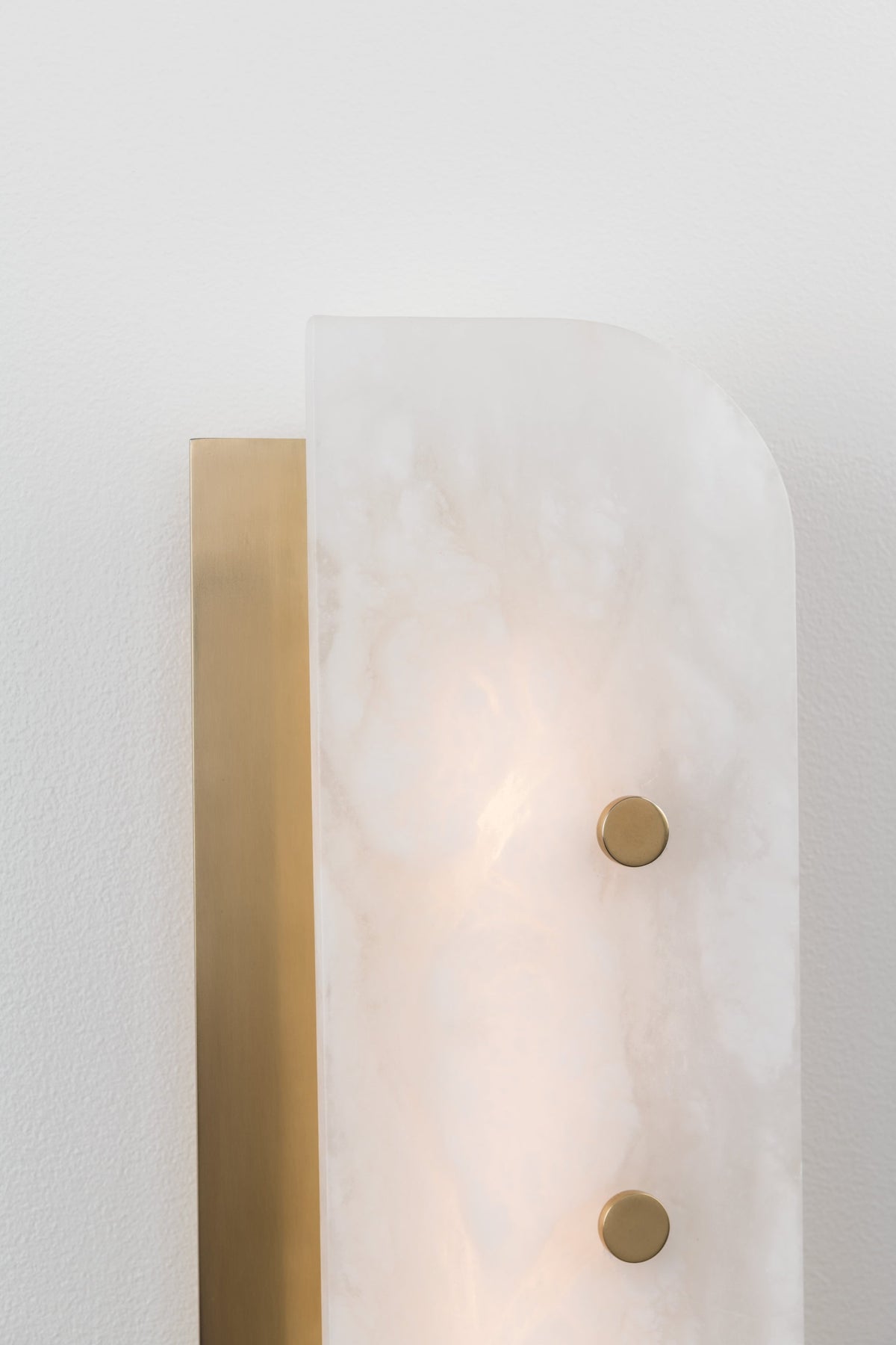 The Yin & Yang Wall Sconce by Hudson Valley Lighting offers a sophisticated lighting solution with a unique design. Measuring 5.50 inches in width and 18.50 inches in height, this sconce features an alabaster shade that complements its modern style. It is equipped with an integrated LED socket, providing 9 watts of power with an impressive lumens output of 320 and a color temperature of 3000K. With a high Color Rendering Index (CRI) of 90, this fixture ensures vibrant and true-to-life colors in your space. The sconce is designed for easy maintenance, is not plug-in, and is field serviceable. Available finishes include Aged Brass and Polished Nickel, making it versatile for any décor. Please note that this fixture is not Title 24 compliant and is rated as UL Damp, which makes it suitable for use in humid environments.