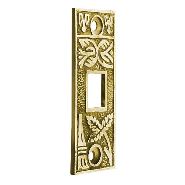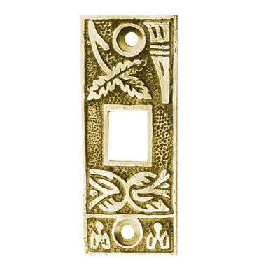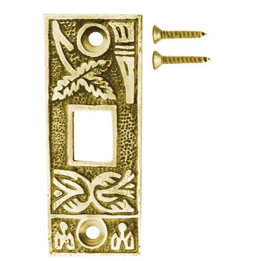 2 1/4 Inch Solid Brass Broken Leaf Pocket Door Strike Plate - this strike plate is installed on the door jamb and provides a "catch" for locking single pocket doors. Comes complete with mounting hardware.