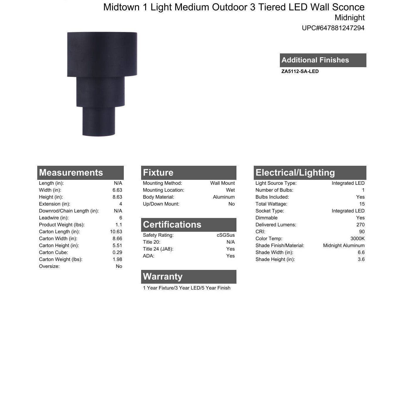 The Midtown indoor/ outdoor wet rated collection offers beautiful tiered dimmable LED wall sconces available in midnight or satin aluminum protected by our superior UV finish guaranteed for 5 years against fading.