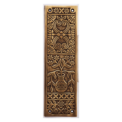 10 Inch Broken Leaf Solid Brass Push Plate (Antique Brass Finish) - plate measures 10 inch tall and 3 inch wide. Solid brass construction allows for decades of service. Comes complete with mounting hardware. Available in several finishes.