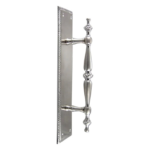 11 1/2 Inch Solid Brass Georgian Roped Style Door Pull and Plate (Satin Nickel Finish)