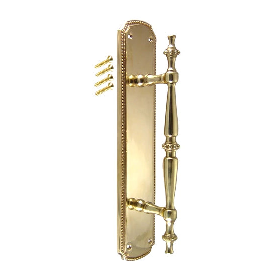11 1/2 Inch Solid Brass Beaded Pull & Plate: measures 11 1/2 inches tall and 2 1/2 inches wide. Solid brass construction for decades of service. Comes complete with mounting hardware.