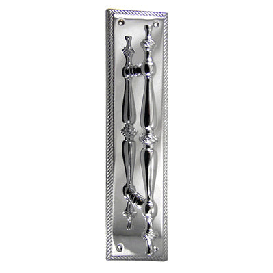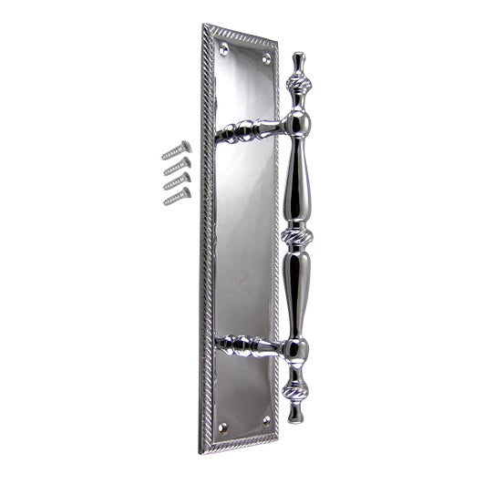 11 1/2 Inch Solid Brass Georgian Roped Style Door Pull and Plate (Polished Chrome Finish)