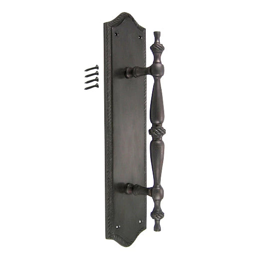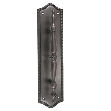 Georgian Oval Roped Style Door Pull & Plate (Black Bronze Finish): measures 12 inches tall and 3 inches wide. Solid brass construction for decades of service. Comes complete with mounting hardware.