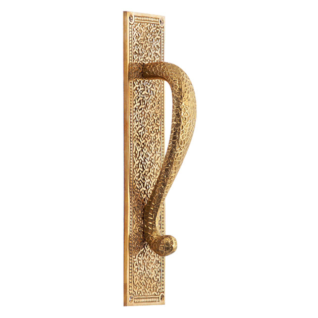 - 12 Inch Solid Brass Rice Pattern Door Pull and Plate (Lacquered Brass Finish)