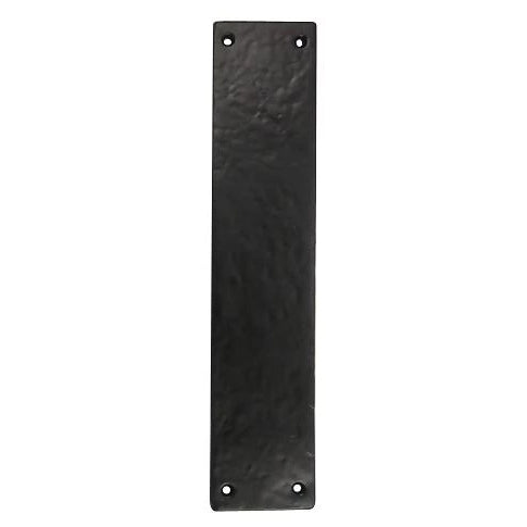 Solid Rough Iron Push & Plate: measures approximately 12 inches tall and 2 1/2 inches wide and comes complete with mounting hardware.