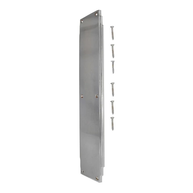 Solid Brass Art Deco Skyscraper Push Plate (Polished Chrome Finish) - Hand finished and crafted from solid brass each plate measures 3 inch wide by 14 inch tall.