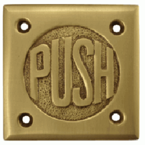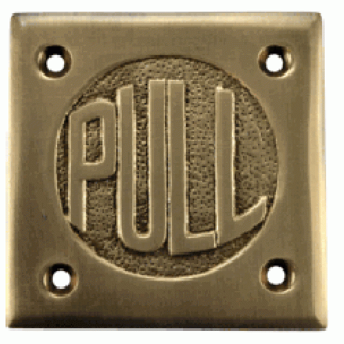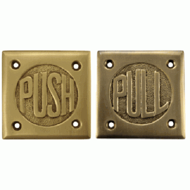 2 3/4 Inch Brass Classic American "Pull" & "Push" Signs (Antique Brass Finish) - This set includes a pull and a push plate. The pull and push plate measure 2 3/4 inches wide by 2 3/4 inches tall. This set comes complete with mounting hardware, and is constructed from solid brass for decades of use.