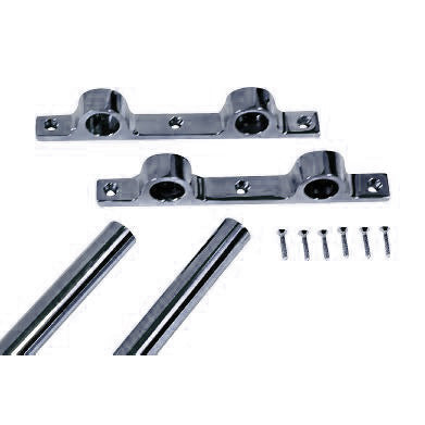 Crafted from durable solid brass, this double push bar is designed for lasting beauty and functionality. Finished in polished brass, it measures approximately 37 inches overall, including brackets. Each tube is made of solid brass, measuring 36 inches in length and 5/8 inch in diameter. The set includes all necessary mounting hardware and is available in a convenient 3-foot section.
