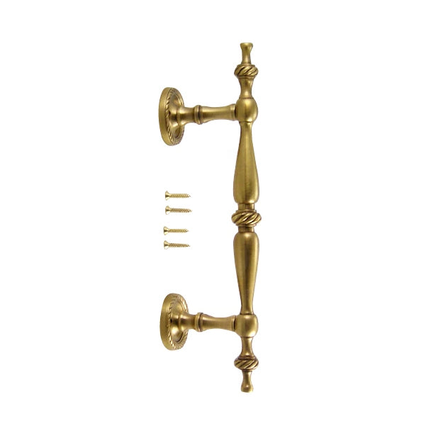 Solid Brass Georgian Style Handle (Antique Brass Finish): Solid Brass Construction. Comes With Mounting Hardware. Measures 9 1/2 Inches long (245 mm) by 1 3/4 Inches Wide (44 mm) with a projection of 2 1/2 inches. Solid Brass Casting & Weighs Approximately 1 Pound.