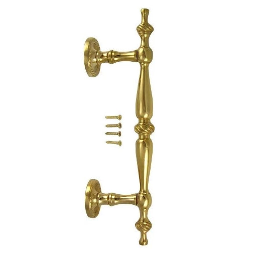 Solid Brass Georgian Style Handle (Polished Brass Finish): Solid Brass Construction. Comes With Mounting Hardware. Measures 9 1/2 Inches long (245 mm) by 1 3/4 Inches Wide (44 mm) with a projection of 2 1/2 inches. Solid Brass Casting & Weighs Approximately 1 Pound. This product comes as an unlacquered natural brass and it will patina over time. A high strength lacquer coating is available upon request.