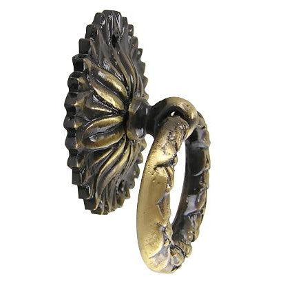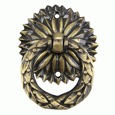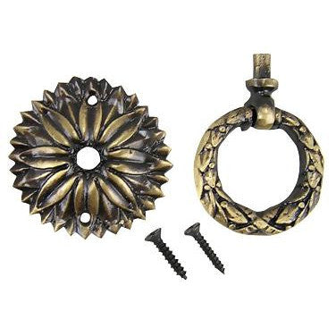 2 Inch Solid Brass Radiant Leaves Drawer Ring Pull (Antique Brass)