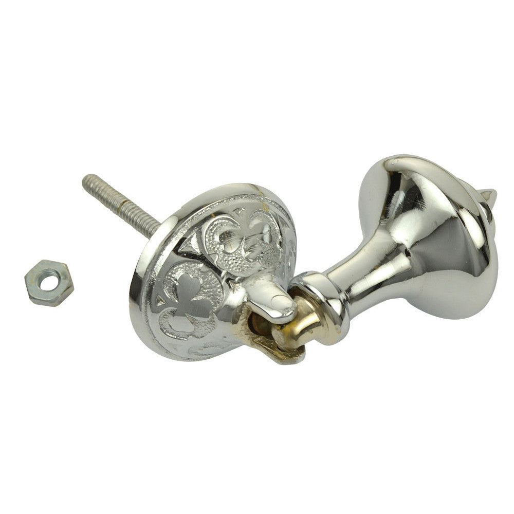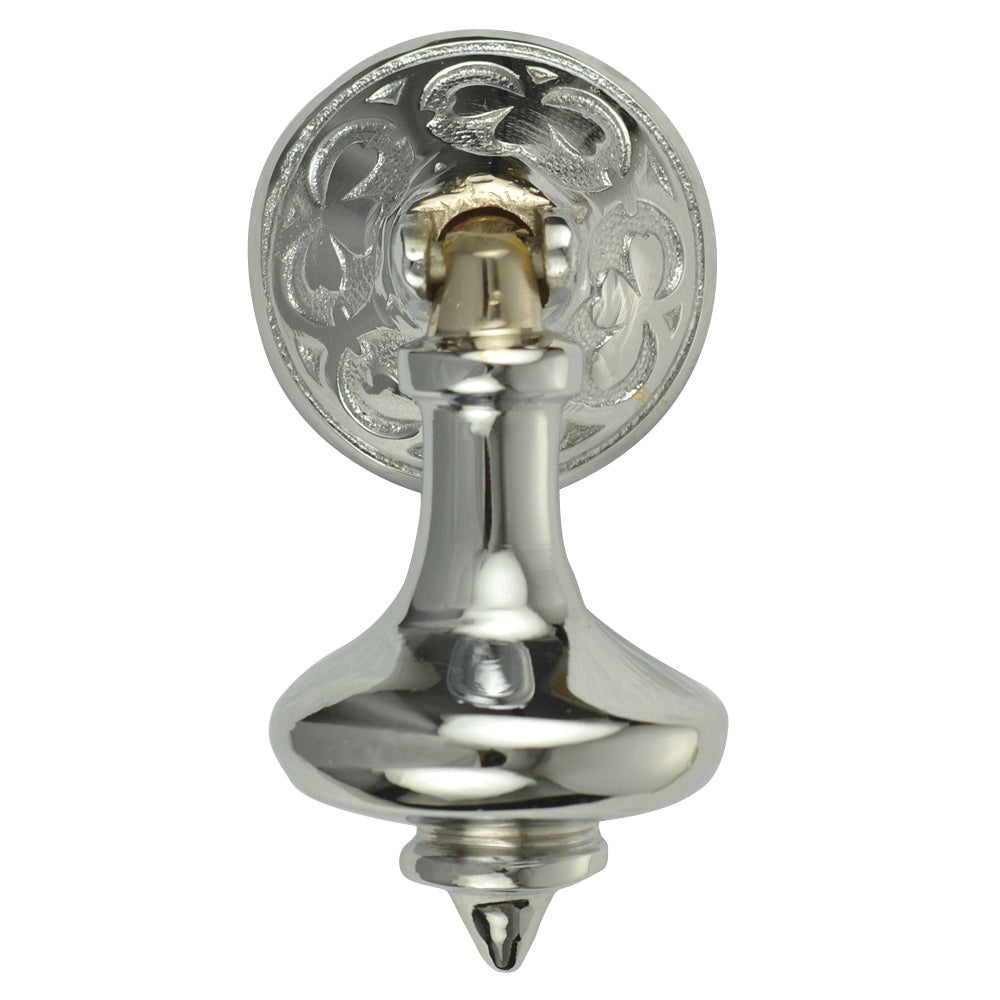 3 Inch Solid Brass Clover Drop Pull (Polished Chrome Finish) - measures 3 inches long with a 1 5/8 inch backplate. Fine detailing with this elegant drop pull. Comes complete with the mounting hardware. This pull is perfect for the Jacobean style and it is available in several finishes.