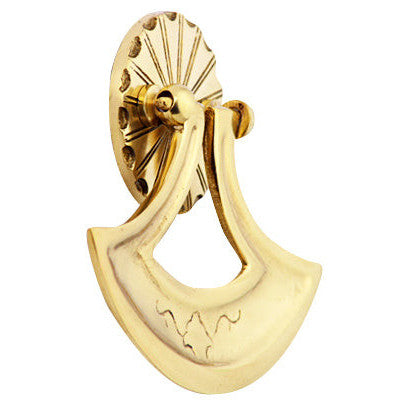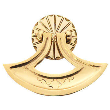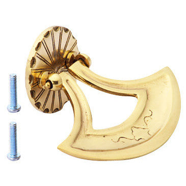 Solid Brass Drop Pull - measures 4 inches wide with a 1 3/4 inch backplate. Polished Brass Finish. Comes complete with the mounting hardware.