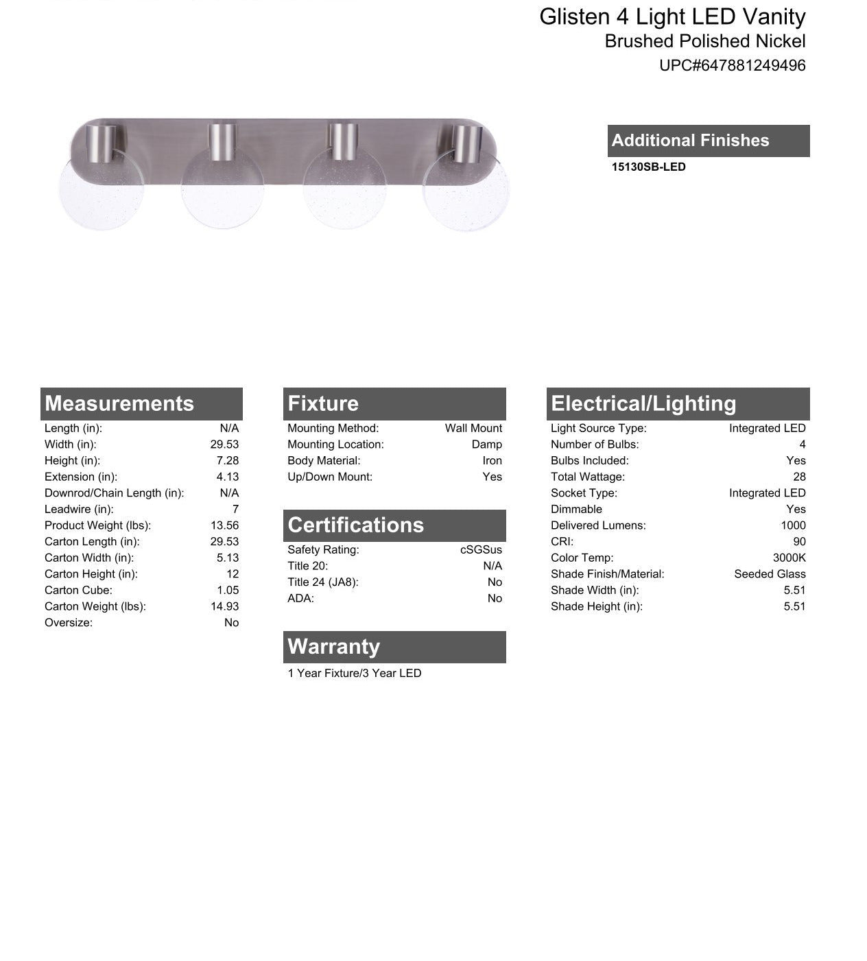 Glisten 4 Light LED Vanity in Brushed Polished Nickel