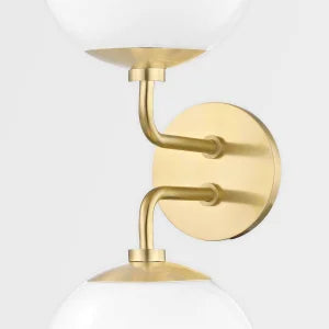 The Stella Wall Sconce by Mitzi offers a chic and modern lighting solution for any space. With dimensions of 7.00 inches in width and 20.00 inches in height, this sconce is perfect for highlighting your decor. It features an elegant glass shade and accommodates two E26 medium base bulbs with a maximum wattage of 60W each. The sconce extends 8.25 inches from the wall and has a top-to-center height of 10.00 inches. Available in a variety of finish options, including Aged Brass, Old Bronze, and Polished Nickel, it adds a touch of sophistication to both contemporary and classic interiors. UL Damp rated, this fixture is suitable for use in humid environments.