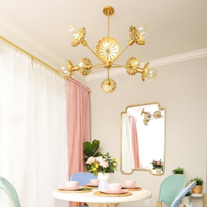 The Alyssa Chandelier by Mitzi is a stunning addition to any home, featuring a sophisticated design with a width of 42.00 inches and a height of 16.00 inches. This chandelier accommodates eight E26 medium base lamps, each with a maximum wattage of 60W, allowing for impressive illumination. The recommended G40 bulbs enhance its elegant aesthetic. Available in three exquisite finishes — Aged Brass, Old Bronze, and Polished Nickel — it beautifully complements various décor styles. Although it is not plug-in, the chandelier is UL Damp rated, making it suitable for areas with higher humidity.