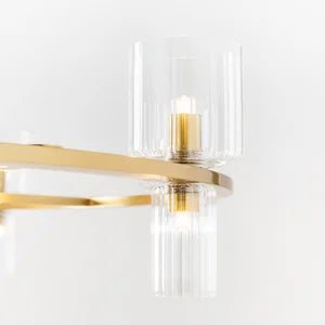 The Tabitha Chandelier in Aged Brass, Polished Nickel, and Soft Black is a stunning addition to any modern space. This elegant fixture features 16 G9 socket type lamps with a recommended wattage of 25W each, creating a radiant glow. It has a width/diameter of 33.75 inches and a height of 11.00 inches, with a top to center measurement of 2.75 inches. Crafted with a clear glass shade, it enhances the visual appeal while ensuring durability. Designed for versatility, it is UL Damp rated, making it suitable for indoor areas that may experience moisture.