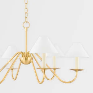The Lenore collection by Mitzi offers an elegant 36-inch wide ceiling fixture adorned with a serene white linen shade. Standing at a height of 16.75 inches, this stunning light source features six lamps and operates on a maximum wattage of 60W, utilizing E12 candelabra base sockets. The fixture is available in two sophisticated finish options: Aged Brass (AGB) and Soft Black (SBK), enhancing its versatility for any decor. Although it does not plug in, it is UL Damp rated, making it suitable for various indoor environments, including areas with moderate humidity.