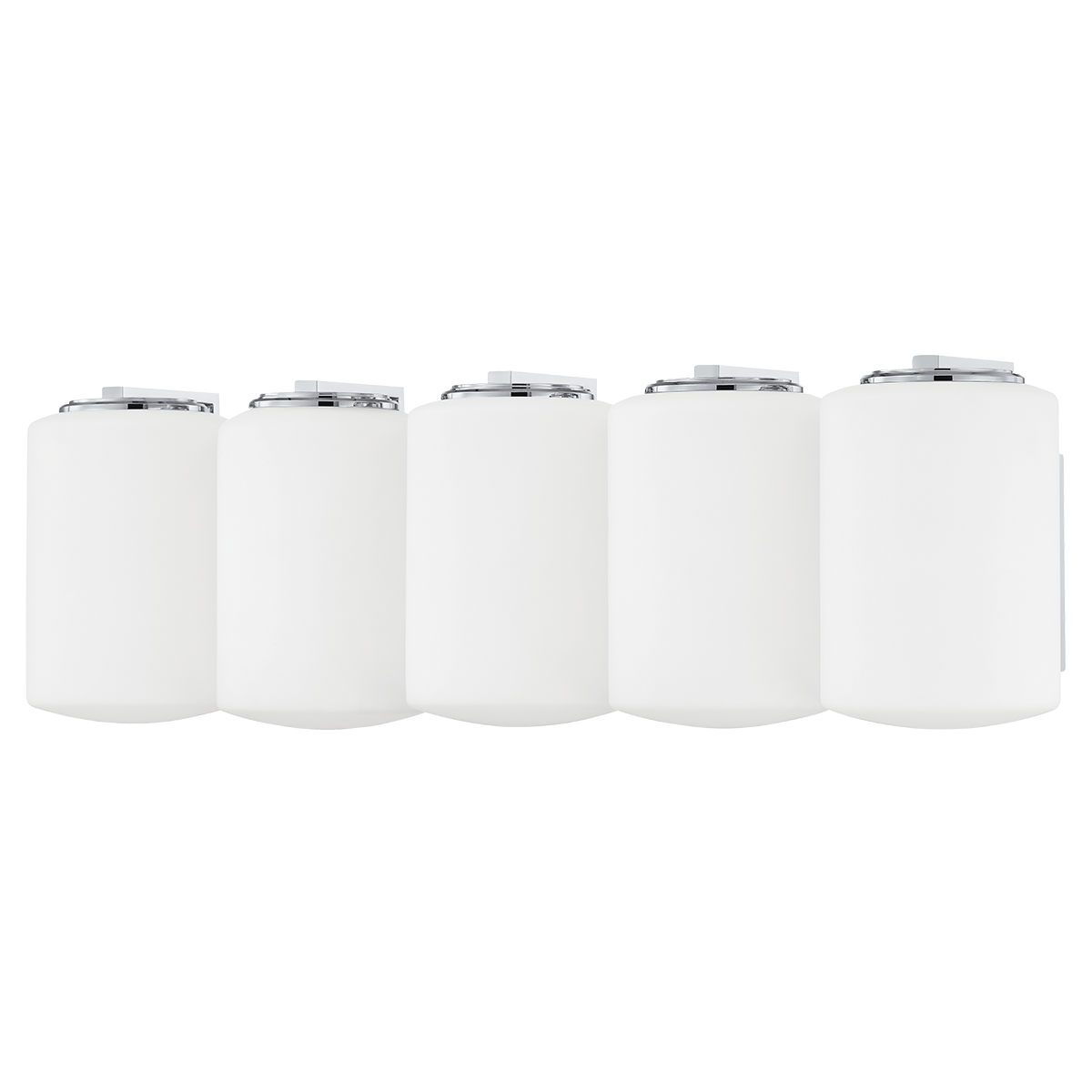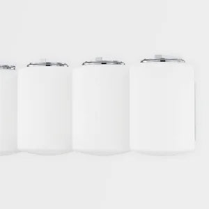 The Chantal Wall Sconce by Mitzi is a modern lighting fixture that perfectly combines functionality and design. This sconce features an opal matte glass shade that diffuses light beautifully, accommodating five E26 medium base bulbs (not included) with a total maximum wattage of 300W. With a diameter of 25.75 inches and a height of 7.75 inches, it offers a stylish silhouette complemented by a polished chrome finish. The 6-inch extension allows it to stand out in any space, while its UL Damp rating makes it suitable for use in areas exposed to moisture.