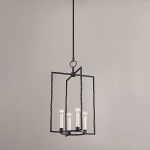 The Adelaide Chandelier by Mitzi is a stunning addition to any modern or vintage-inspired space. This exquisite fixture features a textured black finish with elegant vintage gold leaf accents, adding a touch of sophistication to your decor. It measures 15.00 inches in diameter and stands 24.50 inches tall, making it a striking centerpiece. The chandelier accommodates four E12 candelabra base bulbs, each with a maximum wattage of 60W, and is suitable for dry locations as it is UL Damp rated. Recommended for use with B11 bulbs, this chandelier provides a warm and inviting glow.
