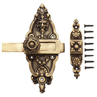 5 1/2 Gargoyle French Door or Cabinet Slide Bolt Latch (Antique Brass Finish)