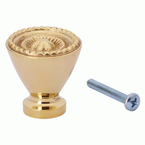 1 1/4 Inch Solid Brass Beaded Star Round Knob (Lacquered Brass Finish) - Measures 1 1/4 inch in diameter with a projection of 1 1/4 inch. Comes complete with mounting hardware. Available in several sizes and finishes including polished brass, antique brass, Black Bronze, polished chrome, Satin Nickel, and flat black. Please email customerservice@lookintheattic.com to place a custom order for this knob.