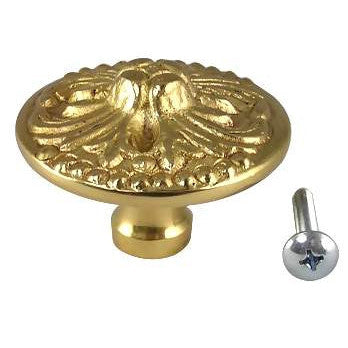 1 7/8 Inch Solid Brass Rococo Victorian Cabinet or Dresser Knob - measures 1 7/8 inches in diameter. Available in Polished Brass, Antique Brass, and Black Bronze.