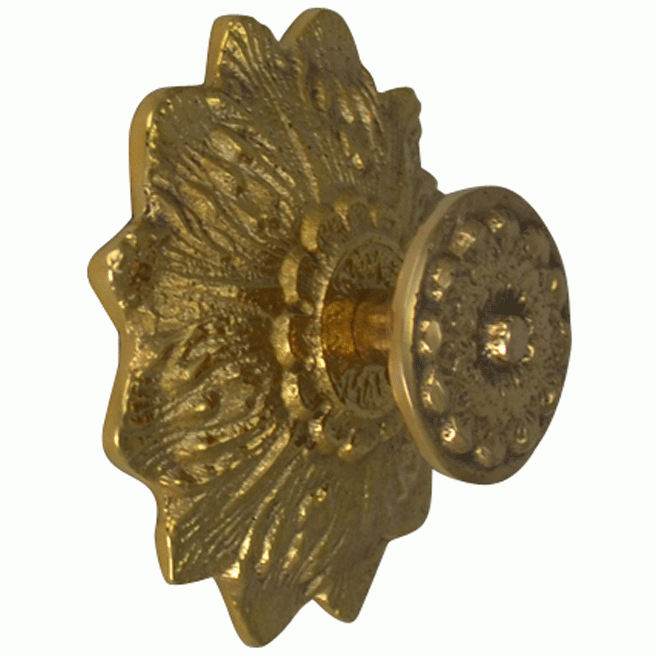 - 2 2/5 Inch Solid Brass Victorian Sunflower Knob (Lacquered Brass Finish)