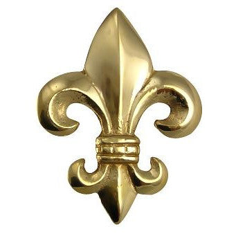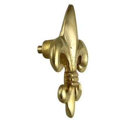 Fleur de Lis Knob (Polished Brass Finish) - measures 2 5/8 inches tall and 2 inches wide with a projection of 3/4 inches. Comes complete with mounting hardware.