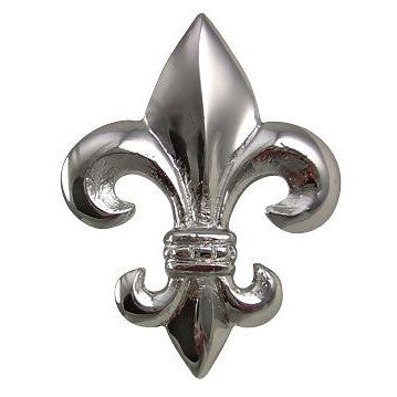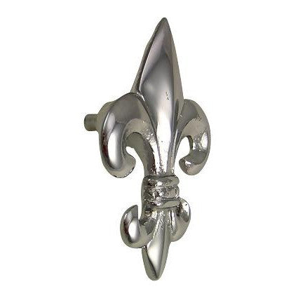 Fleur de Lis Knob (Polished Chrome Finish) - measures 2 5/8 inches tall and 2 inches wide with a projection of 3/4 inches. Comes complete with mounting hardware.