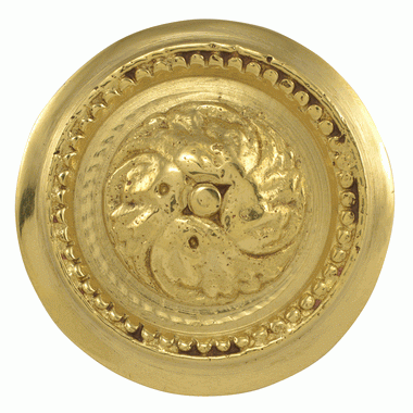 • 2 Inch Solid Brass Beaded Victorian Cabinet Knob (Polished Brass Finish)