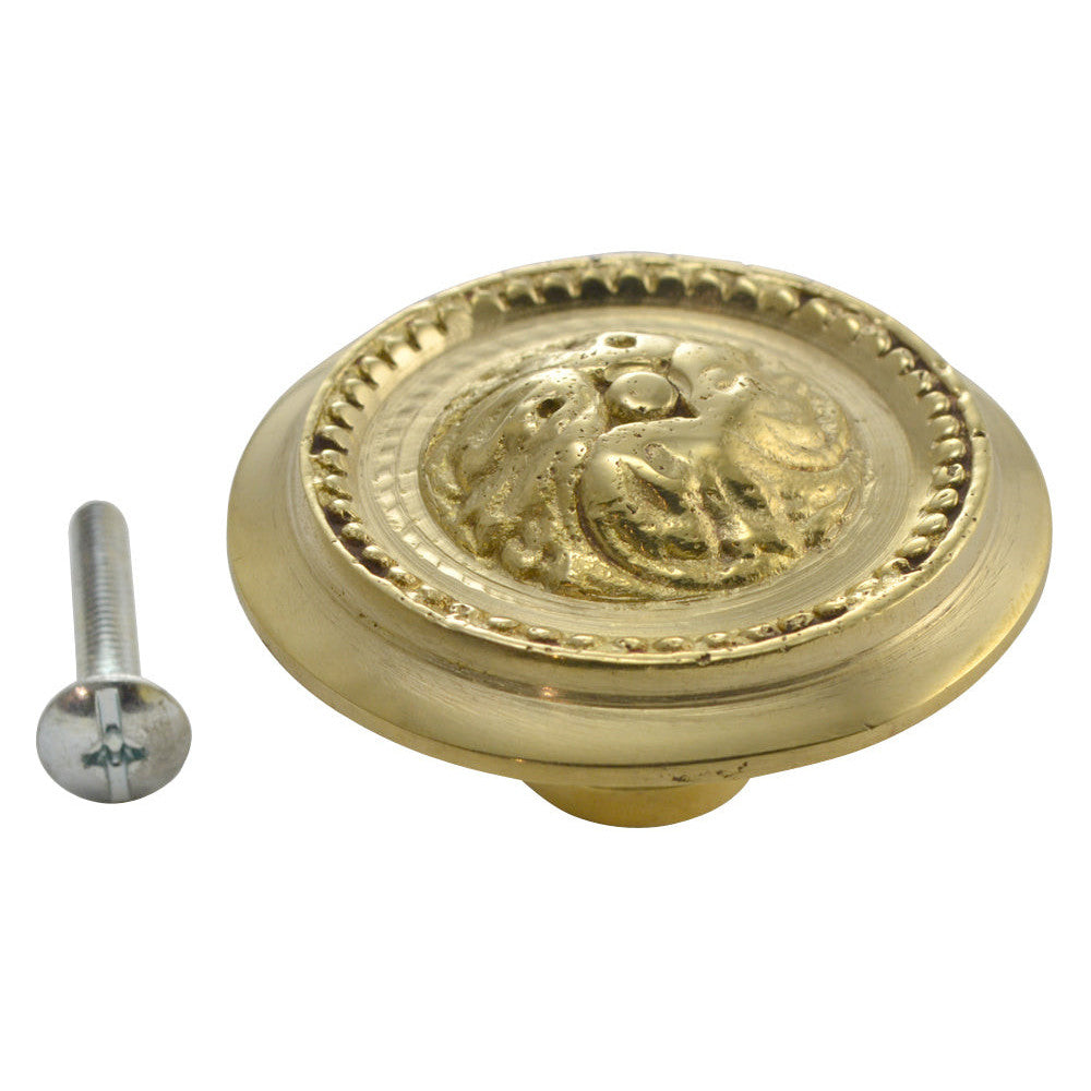 2 Inch Solid Brass Beaded Victorian Cabinet Knob Polished Brass Finish