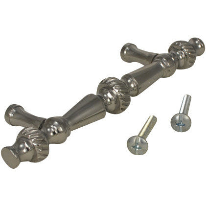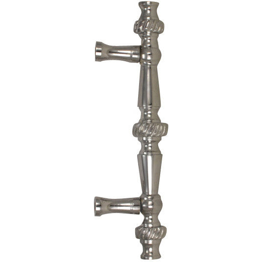 5 Inch Solid Brass Georgian Roped Style Pull (Polished Chrome Finish) - measures 5 inch long and 3 inch center to center mounting distance (3.00 c-c) with a projection of 1 1/3 inch. Coordinating knob available. Comes complete with the mounting hardware. Available in polished brass, antique brass, weathered black, weathered rust, Black Bronze, satin brass, antique nickel, Satin Nickel, antique copper and polished nickel.