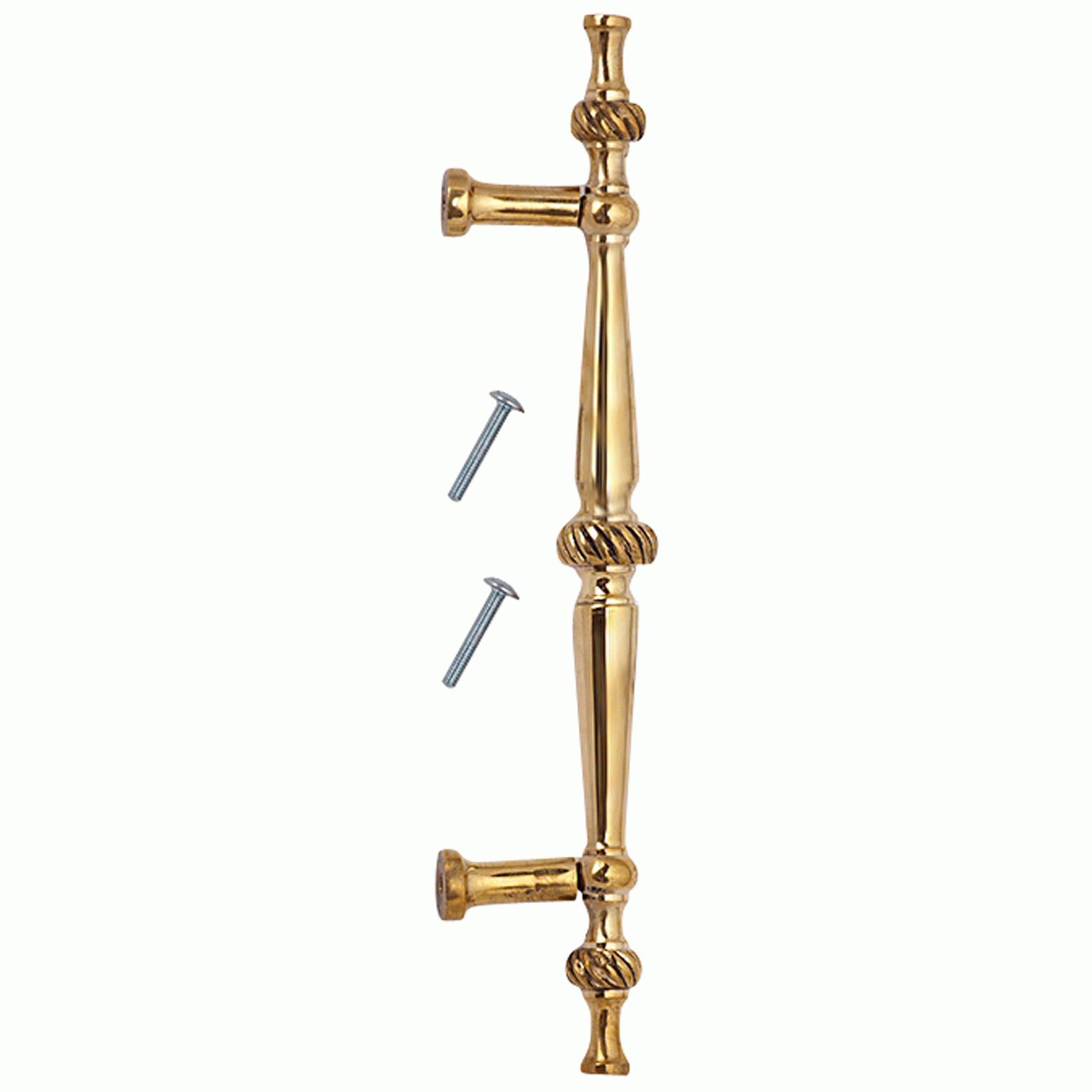 6 1/2 Inch Overall (4 Inch c-c) Solid Brass Georgian Roped Style Pull (Lacquered Brass Finish) - Measures 6 1/2 inch long with a 4 inch center-to-center mounting distance (4.00 c-c) and a projection of 1 1/3 inch. Coordinating knob available. Comes complete with mounting hardware. Available in different finishes including Black Bronze, antique brass and polished brass. Please email customerservice@lookintheattic.com to place a custom order for this item.