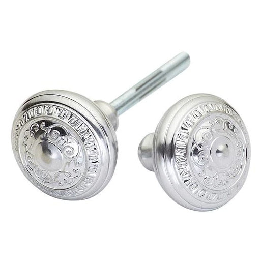 2 Inch Romanesque Style Spare Door Knob Set (Satin Nickel) - This attractive spare door knob is constructed from solid brass and is hand finished in smooth antique brass. Measure 2 inches in diameter. Each set includes (2) spare door knobs and a spindle.