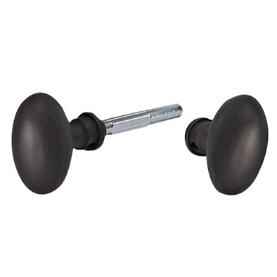 Solid Brass Oval Shape Spare Door Knob Set (Black Bronze) - each door knob measures 1 3/8 inch tall by 2 1/4 inch wide with a 2 3/8 inch projection. This set includes (2) door knobs, a spindle and set screws.