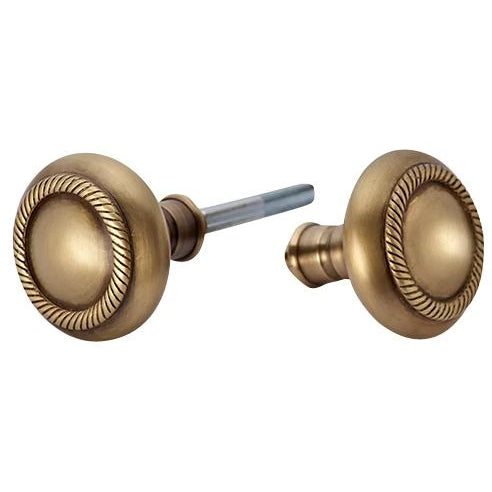 Solid Brass Georgian Roped Spare Door Knob Set (Antique Brass) - Each knob measures 2 1/8 inch in diameter with an approximate 2 1/2 inch projection. Constructed from solid brass and hand finished, each set contains (2) spare door knobs.
