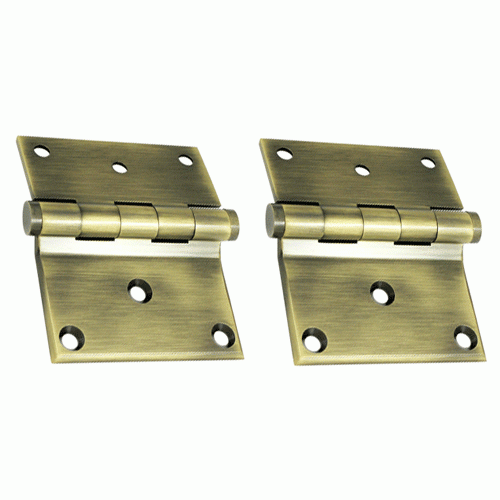 3 x 3 1/2 Inch Solid Brass Half Surface Hinge (Antique Brass Finish) - Sold in Pairs - Measures 3 inches tall by 3 1/2 inches wide. Comes complete with mounting hardware.