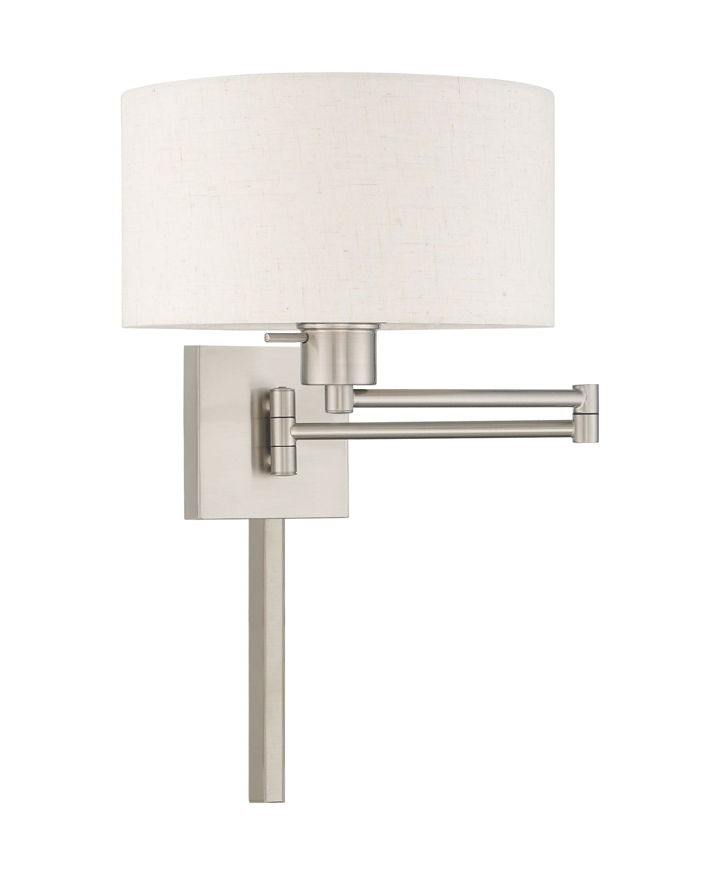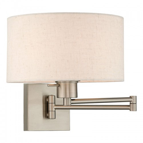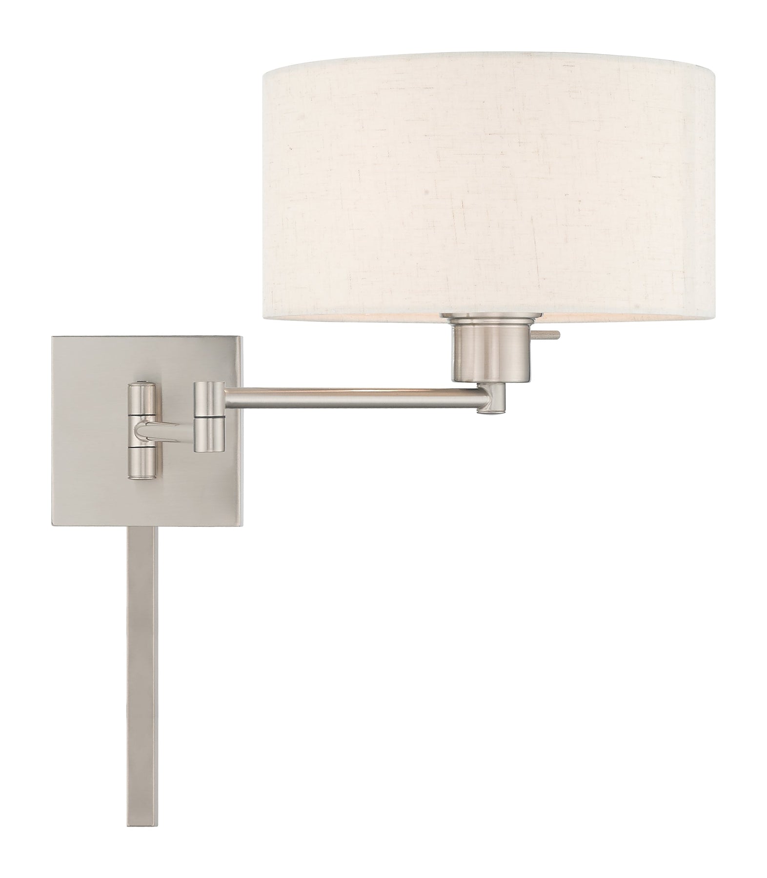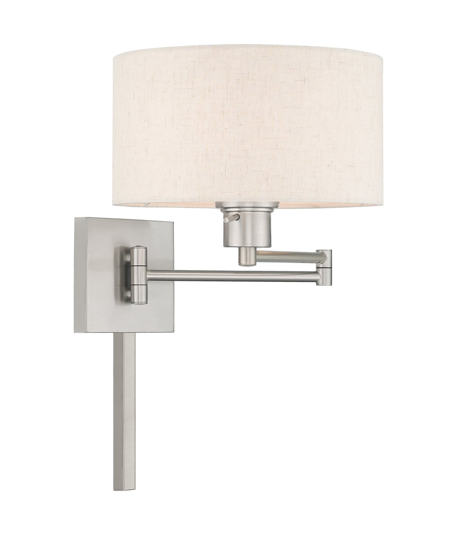 The Swing Arm Wall Lamp (Item number: 40037-91) is an ideal addition for anyone looking to illuminate a space with both versatility and style. Featuring a brushed nickel finish, this lamp boasts a handcrafted oatmeal fabric hardback shade that adds a touch of warmth and texture. It measures 11 inches in width and height, with an extension of 24.25 inches, making it easy to position for optimal lighting. Designed to accommodate one medium base bulb with a maximum wattage of 100W (bulb not included), this lamp is perfect for damp locations, ensuring reliability in various environments. Additionally, it includes a convenient 3-way switch and comes with two 12-inch cord covers for a cleaner installation.