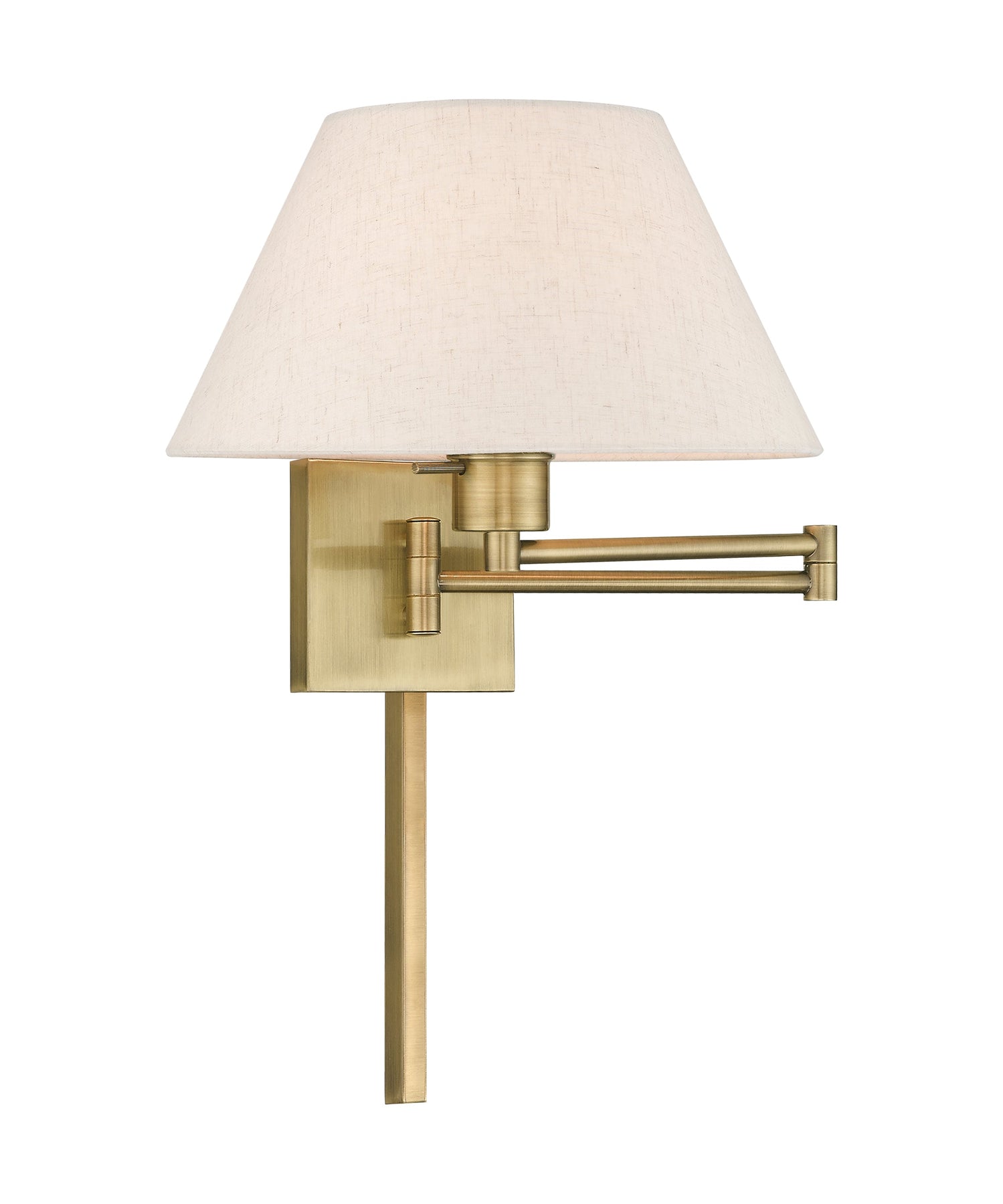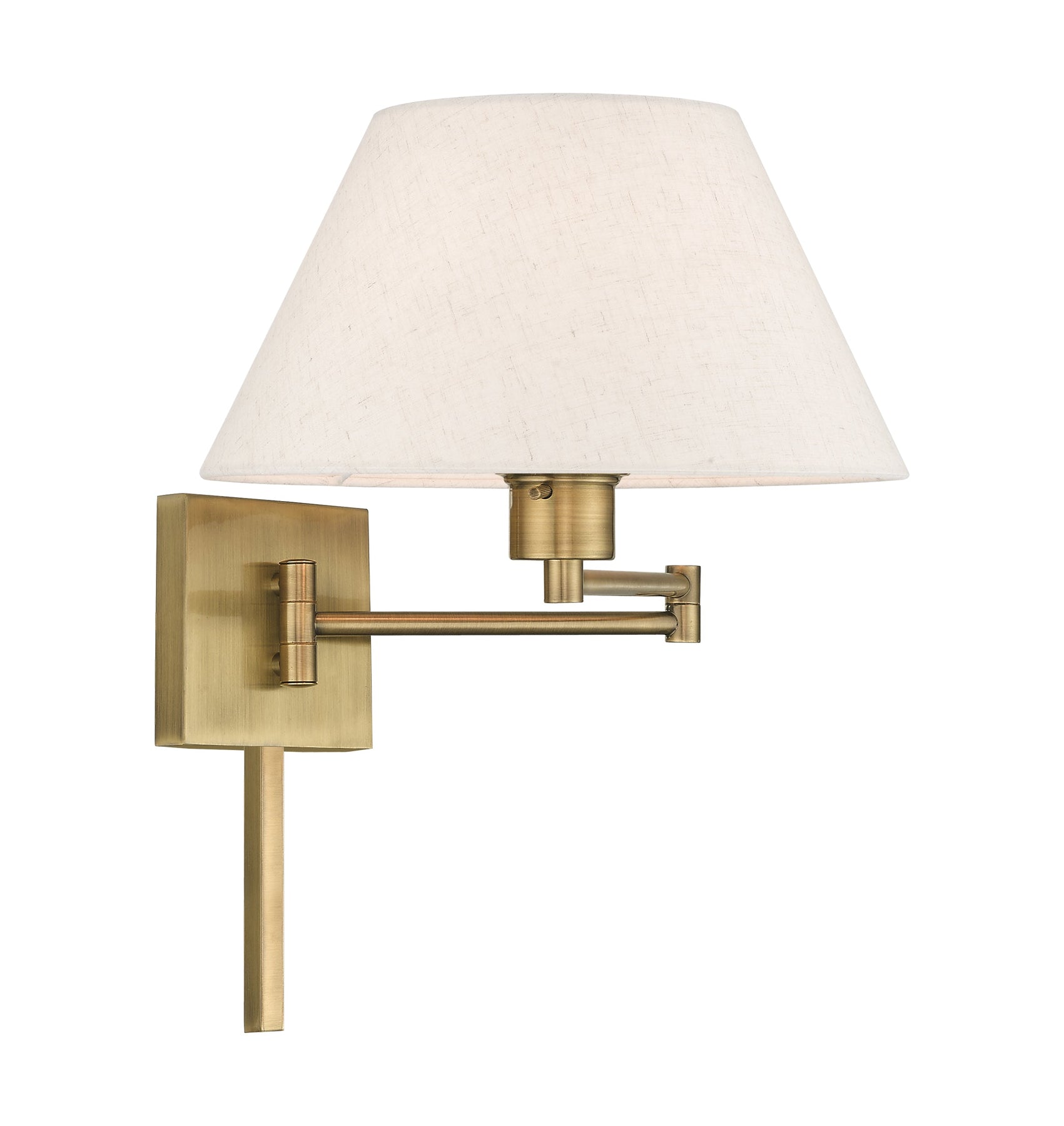 The 40038-01 Swing Arm Wall Lamp is an ideal choice for those looking to enhance both style and functionality in their space. This charming lamp features a classic antique brass finish and a hand-crafted oatmeal fabric hardback shade, adding a touch of traditional elegance. Measuring 13 inches in width and 12 inches in height, with a generous 25-inch extension, it provides customizable lighting placement. Designed for one medium base bulb with a maximum wattage of 100W, it includes a convenient 3-way switch and two 12-inch cord covers for a tidy appearance. The lamp is suitable for damp locations, making it versatile for different settings, whether mounted beside your bed or above a cozy reading chair.